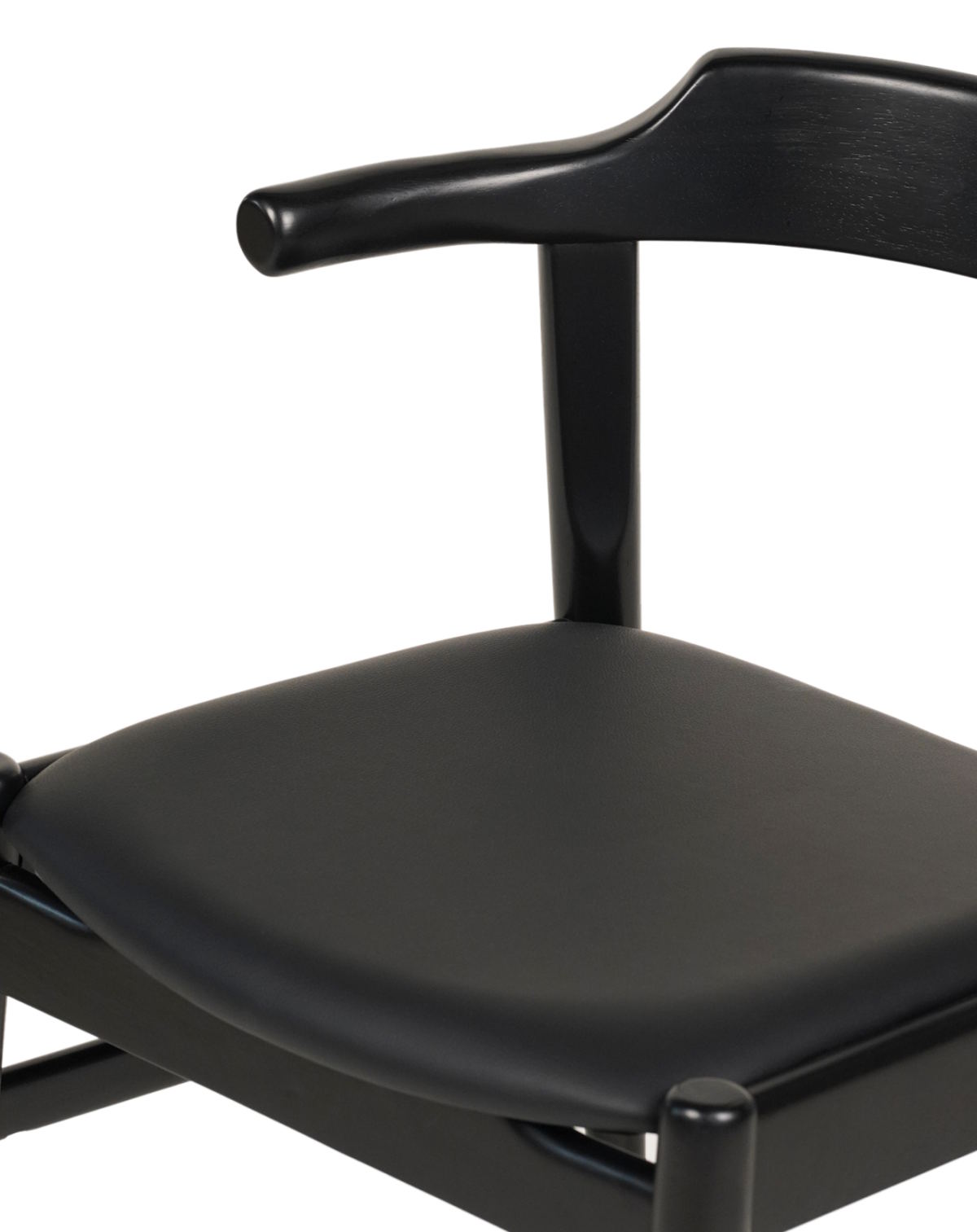 Το άνετο, σχεδόν τετράγωνο κάθισμα με επένδυση από PU δέρμα επίσης σε μαύρο χρώμα ενισχύει τον σύγχρονο χαρακτήρα της καρέκλας και εξασφαλίζει ευκολία στη συντήρηση, ακόμη και σε συνθήκες εντατικής χρήσης.