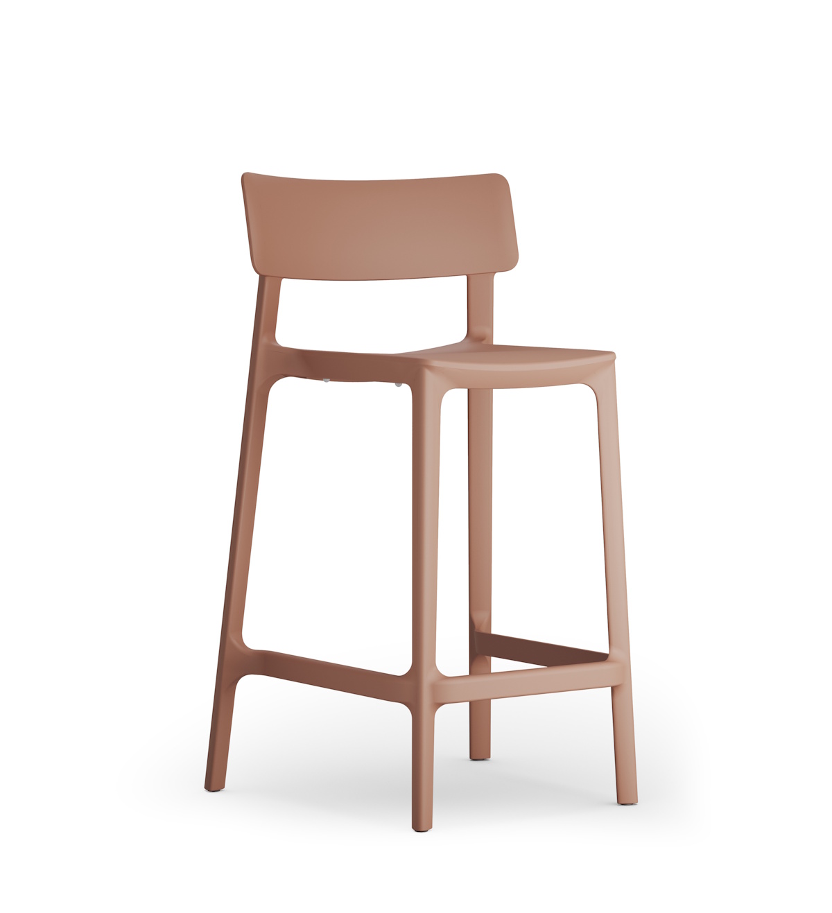 Ένα στοιβαζόμενο monoblock σκαμπό πολυπροπυλενίου. Κατασκευάζεται στην Ιταλία. Σχεδιασμός: SANDONA' - BETTINI.