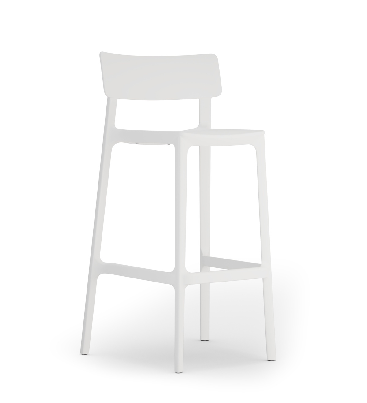 Ένα στοιβαζόμενο monoblock σκαμπό πολυπροπυλενίου. Κατασκευάζεται στην Ιταλία. Σχεδιασμός: SANDONA' - BETTINI.