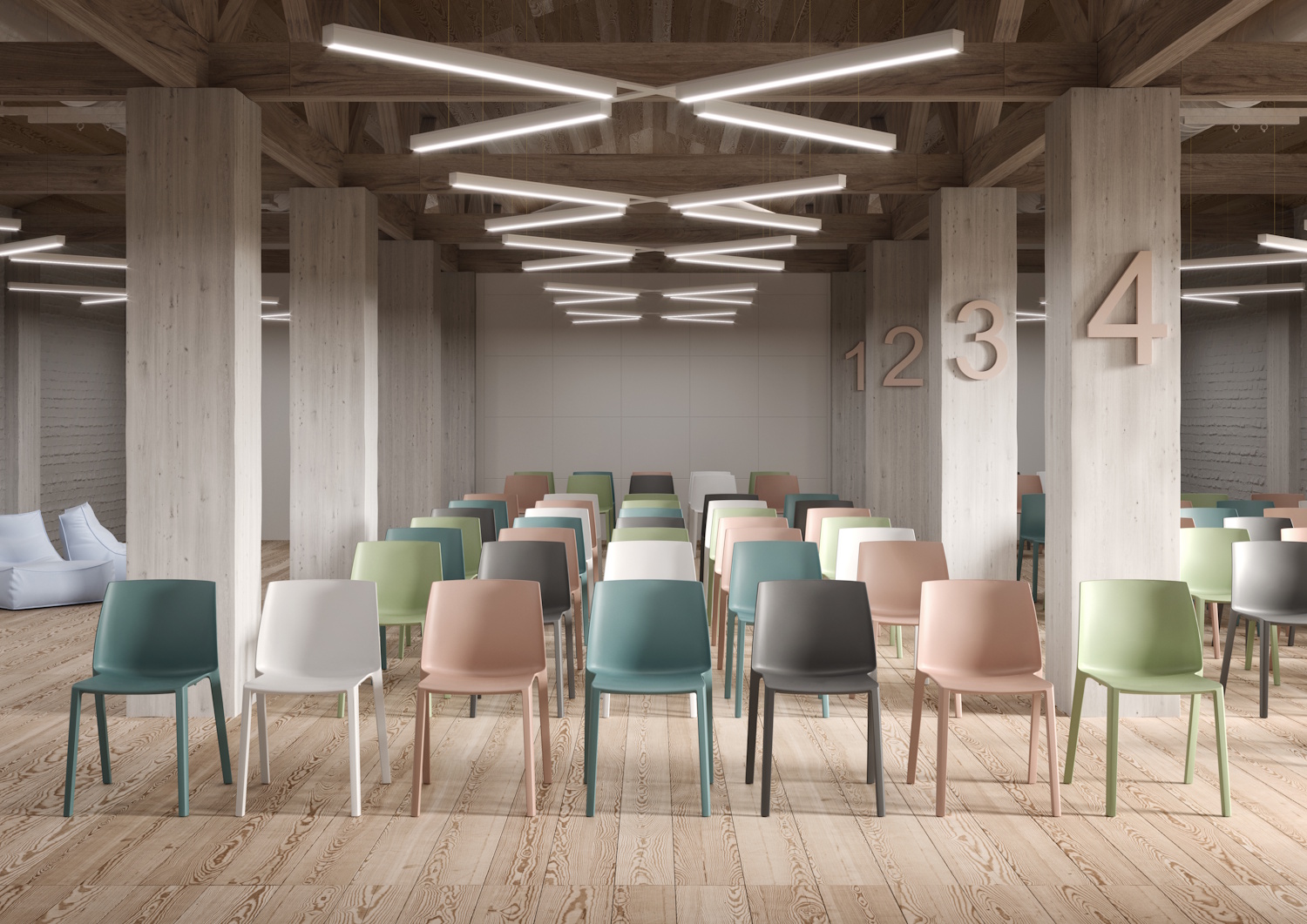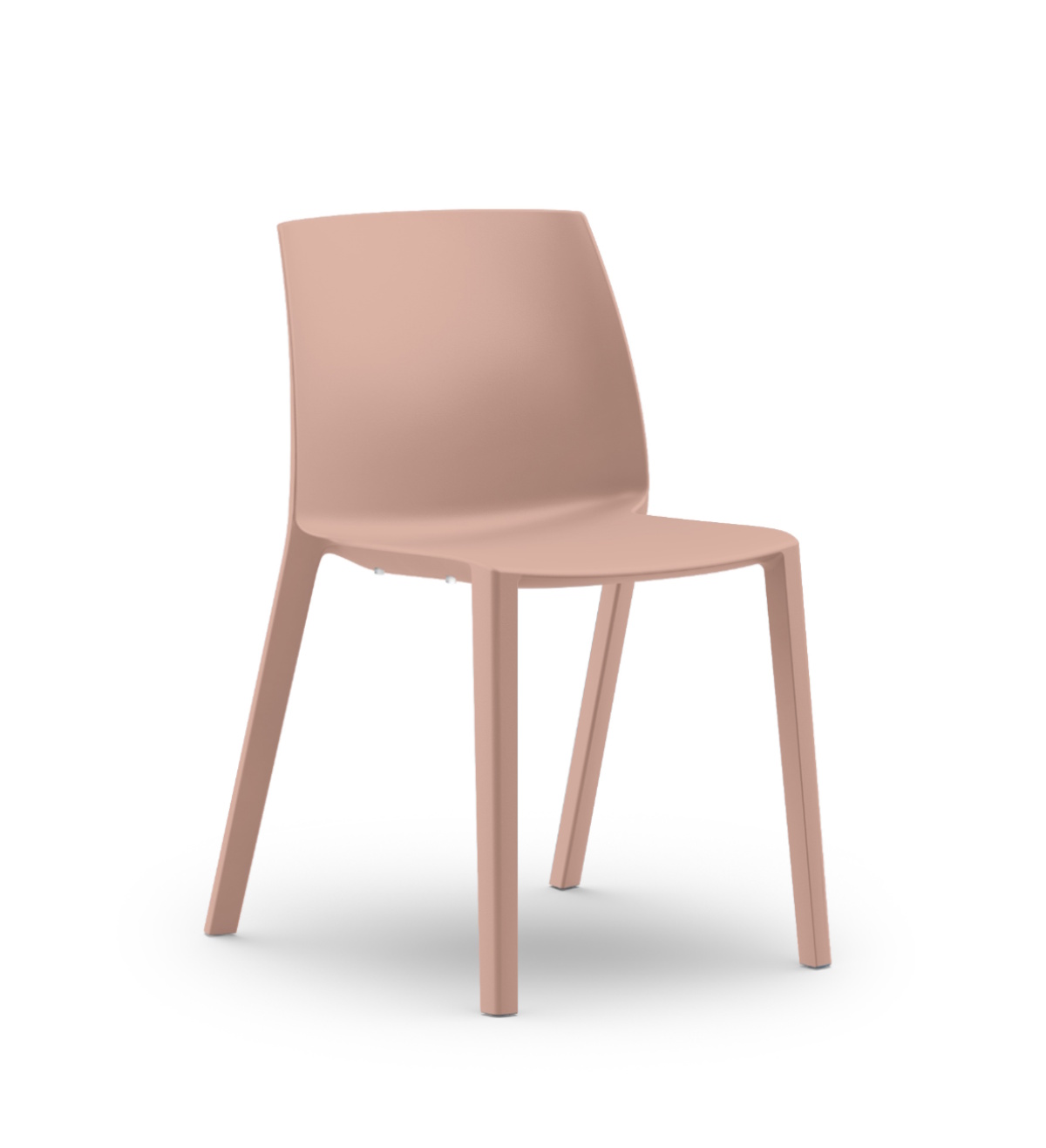 Μια στοιβαζόμενη monoblock καρέκλα πολυπροπυλενίου. Κατασκευάζεται στην Ιταλία. Σχεδιασμός: Δημιουργική μηχανική από την Activa.