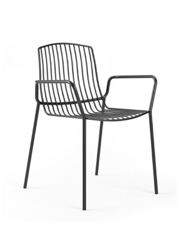 Stackable armchair with treatment for outdoor use, made of steel tube Φ18x2mm and solid iron with diameters of 11mm and 8mm. Color change possible with additional charge.
