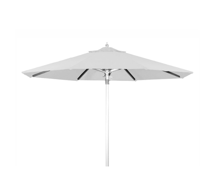 Ομπρέλα αλουμινίου 220x220cm σε ασημί σκελετό με πολυεστερικό λευκό ύφασμα 310g/m2. Μονοκόμματος ιστός διαμέτρου Φ48mm και 8-ακτίνες διατομής 17x22mm.