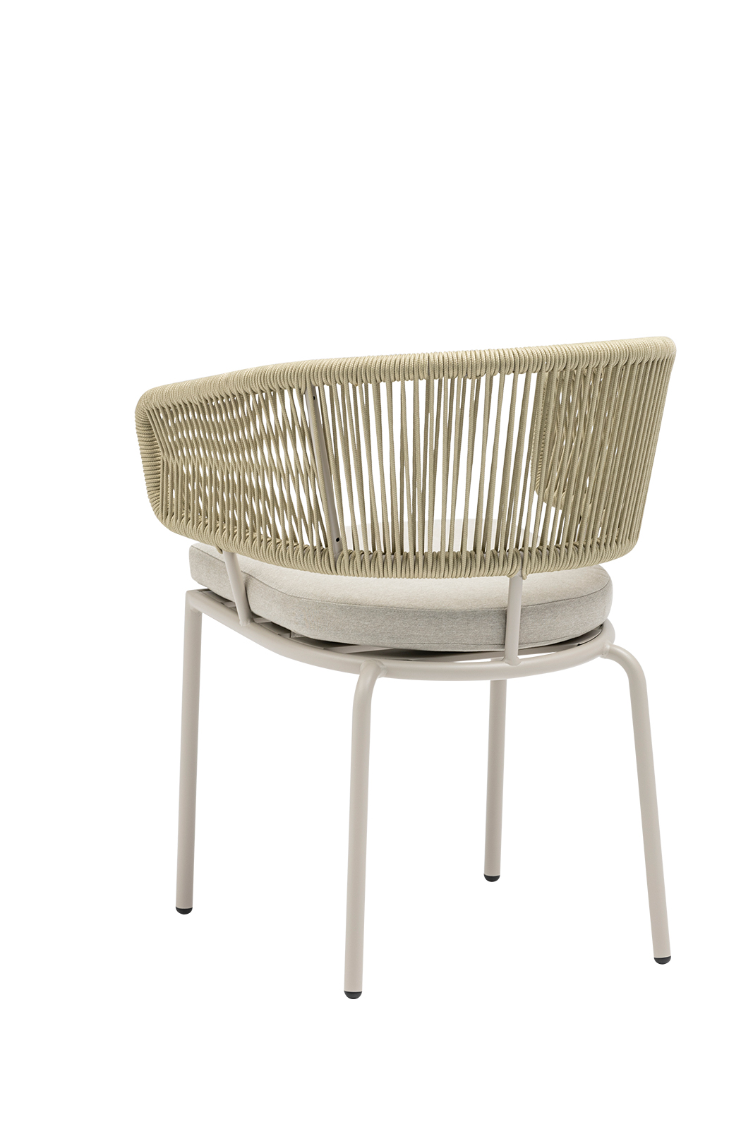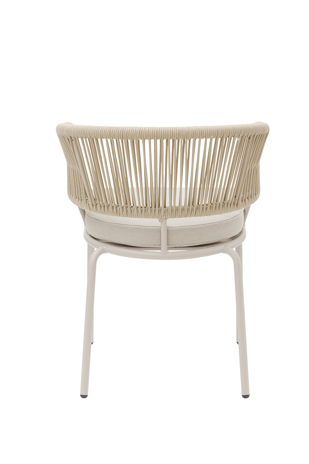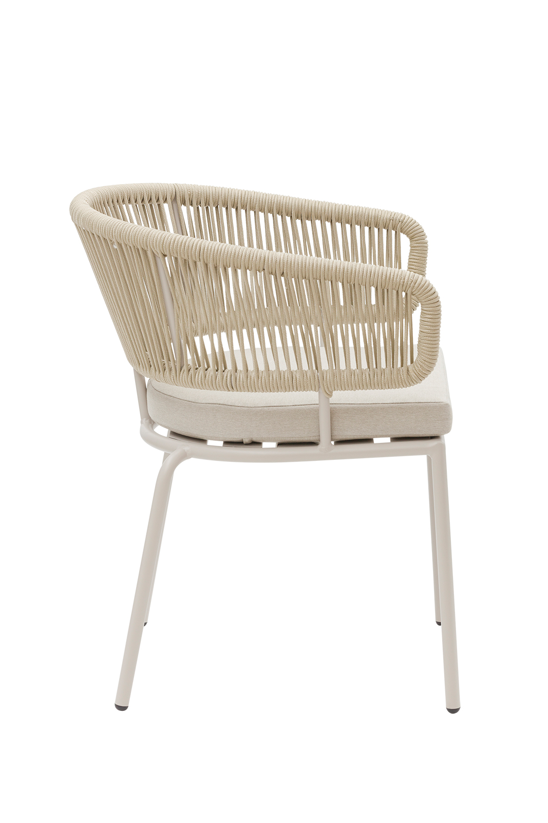 Πολυθρόνα αλουμινίου μπεζ, πλεκτή με μπεζ σχοινί διαμέτρου 5mm και μαξιλάρι 5cm με outdoor μπεζ ύφασμα. Αυτό το μοντέλο διατίθεται και σε taupe χρώμα.