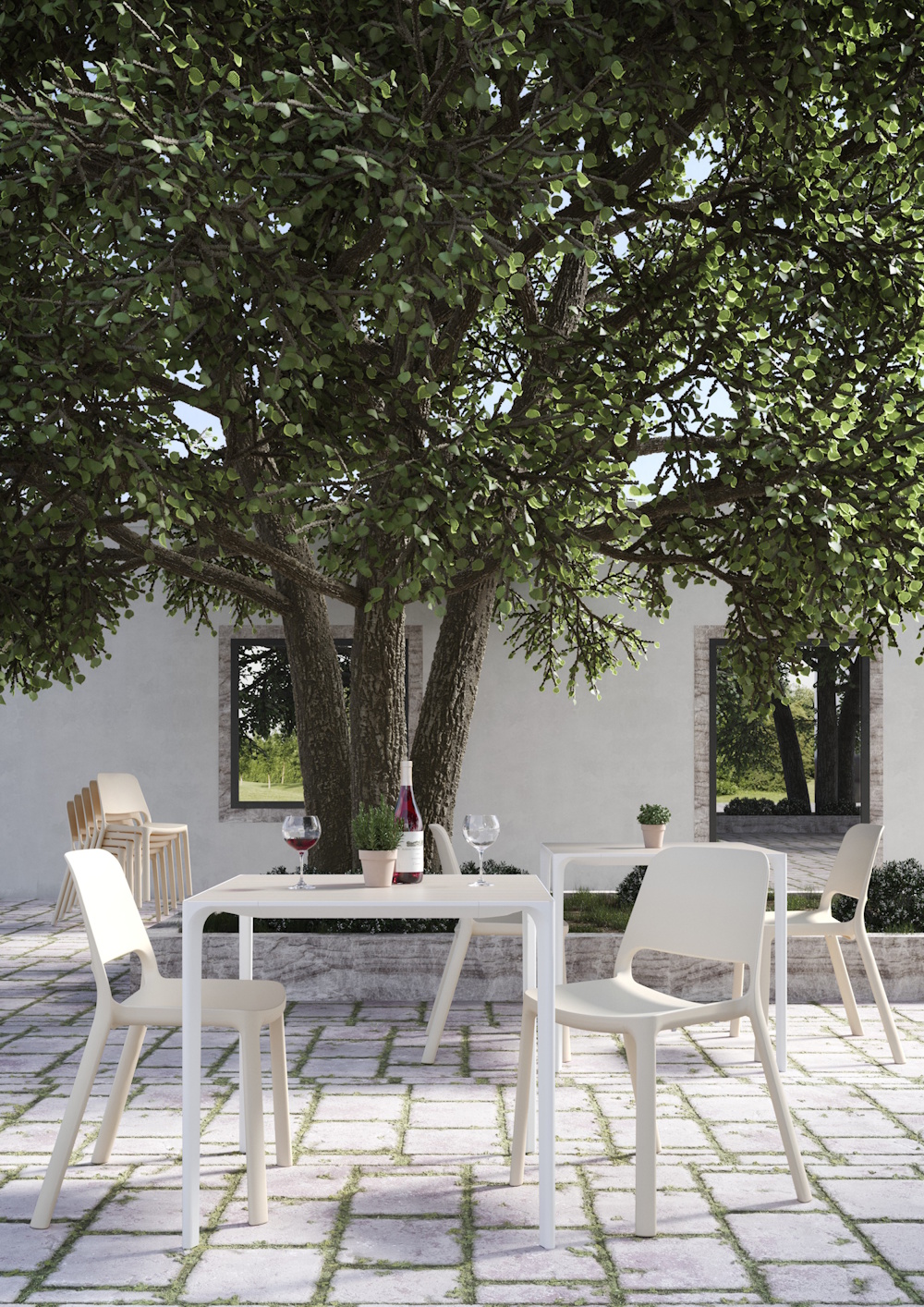 Μια στοιβαζόμενη monoblock καρέκλα πολυπροπυλενίου. Κατασκευασμένη στην Ιταλία και σχεδιασμένη από τον Orlandini.