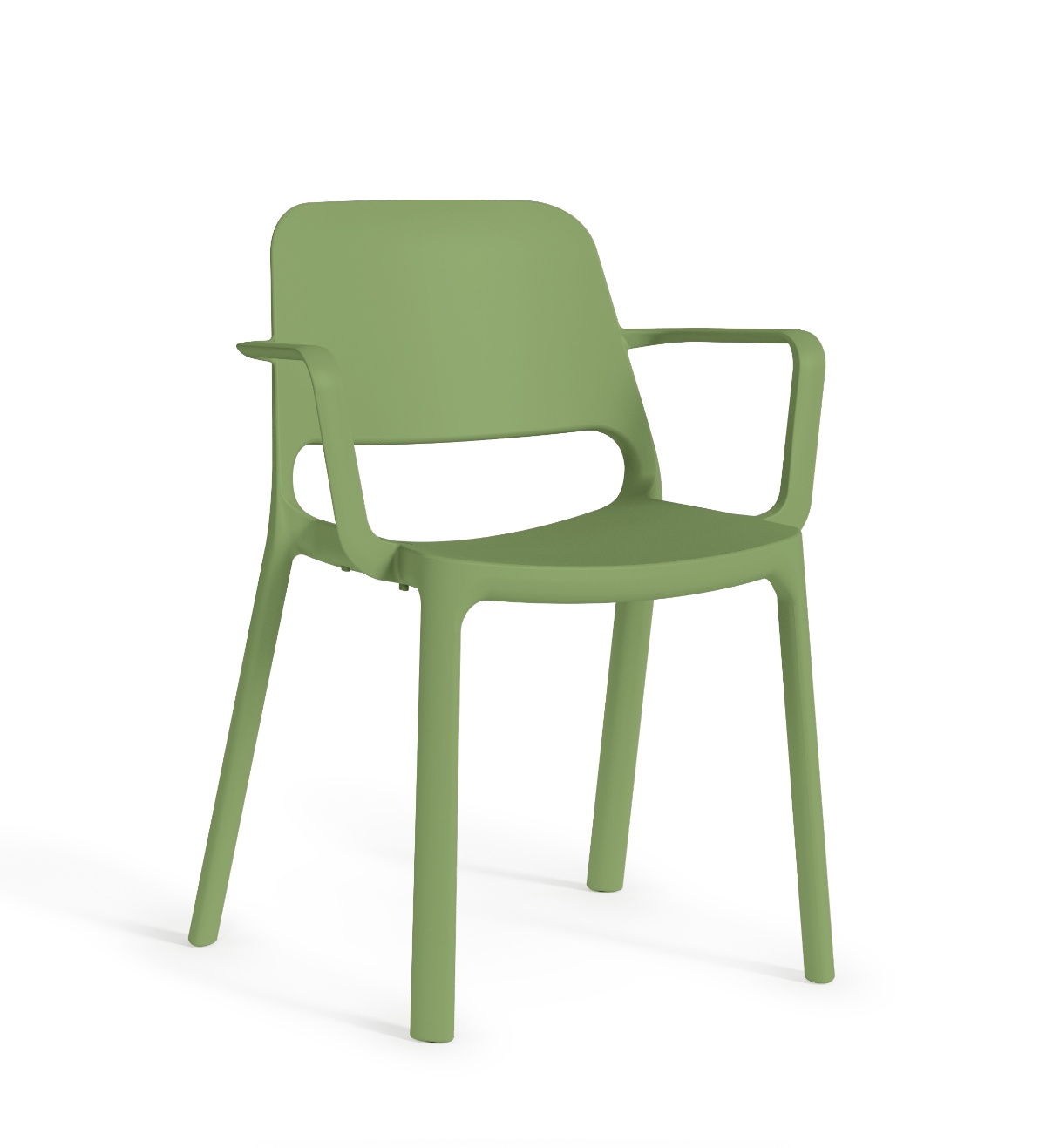 Μια στοιβαζόμενη monoblock πολυθρόνα πολυπροπυλενίου. Κατασκευασμένη στην Ιταλία και σχεδιασμένη από τον Orlandini.