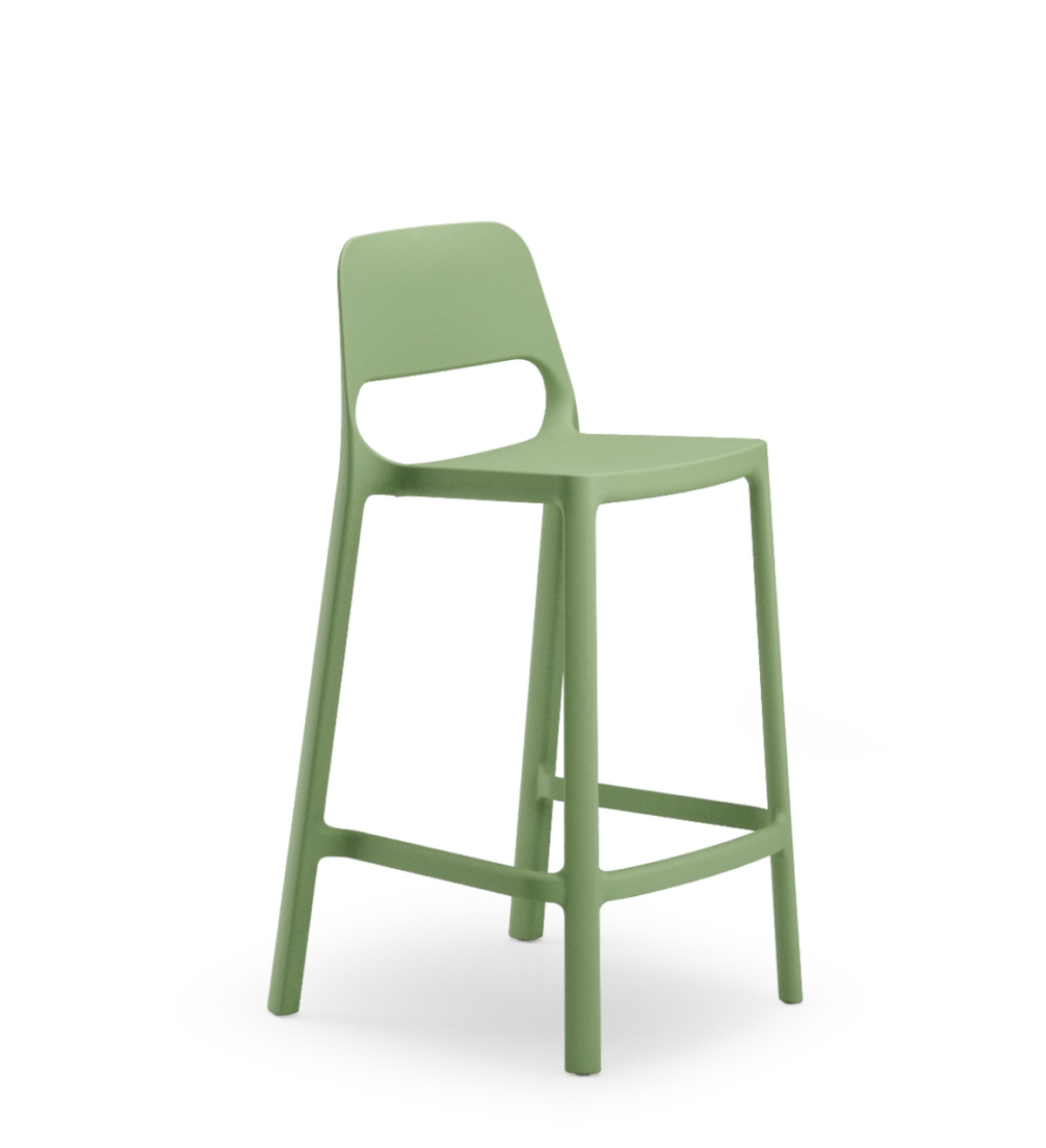 Ένα στοιβαζόμενο monoblock σκαμπό πολυπροπυλενίου. Κατασκευασμένο στην Ιταλία και σχεδιασμένο από τον Orlandini.