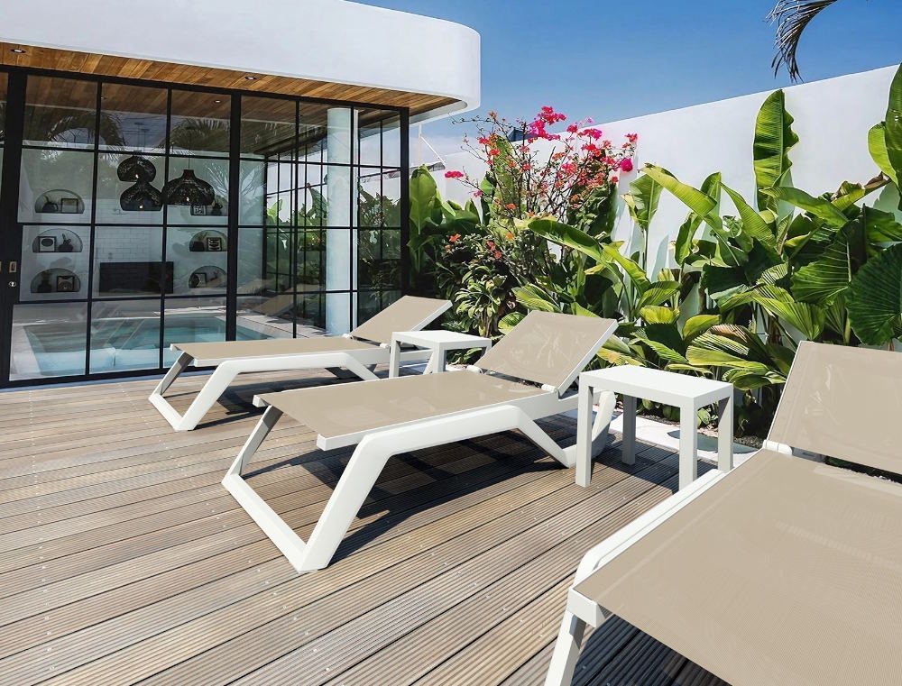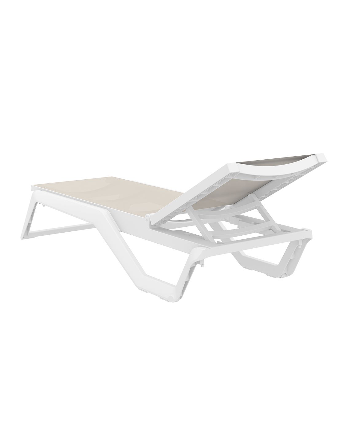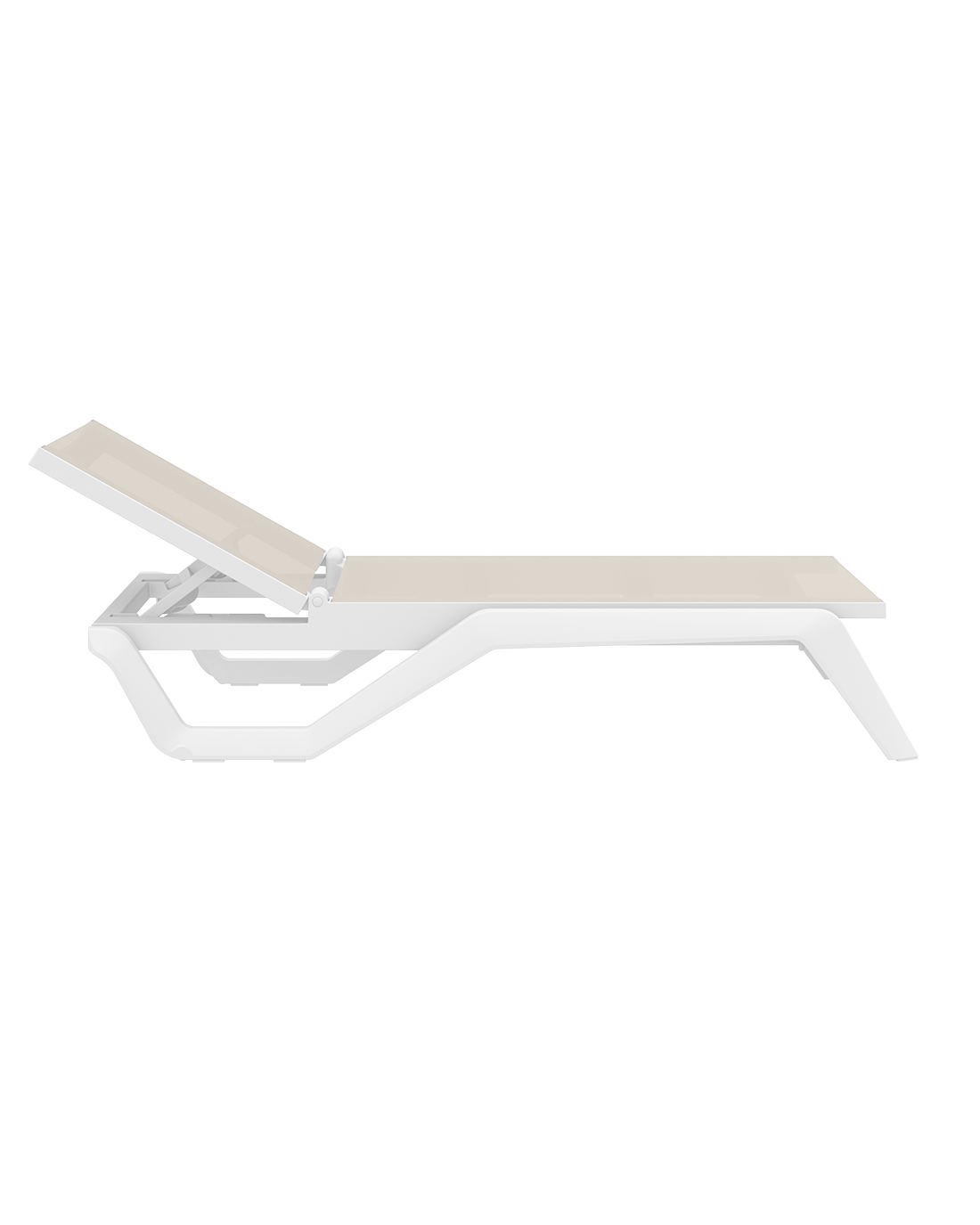 Ξαπλώστρα του οίκου Siesta από υψηλής ποιότητας πολυπροπυλένιο με ενίσχυση από υαλώδεις ίνες (fiber glass) για απόλυτη αντοχή.Με αντιβακτηριδιακό ύφασμα Phifertex και προστασία UV.Είναι στοιβαζόμενη,έχει ρυθμιζόμενη πλάτη 5 θέσεων,μικρά ροδάκια στo πίσω μέρος για εύκολη μετακίνηση και αντιολισθητικά πέλματα εμπρός.Πιστοποιημένο προιόν από τον Ιταλικό οίκο CATAS.