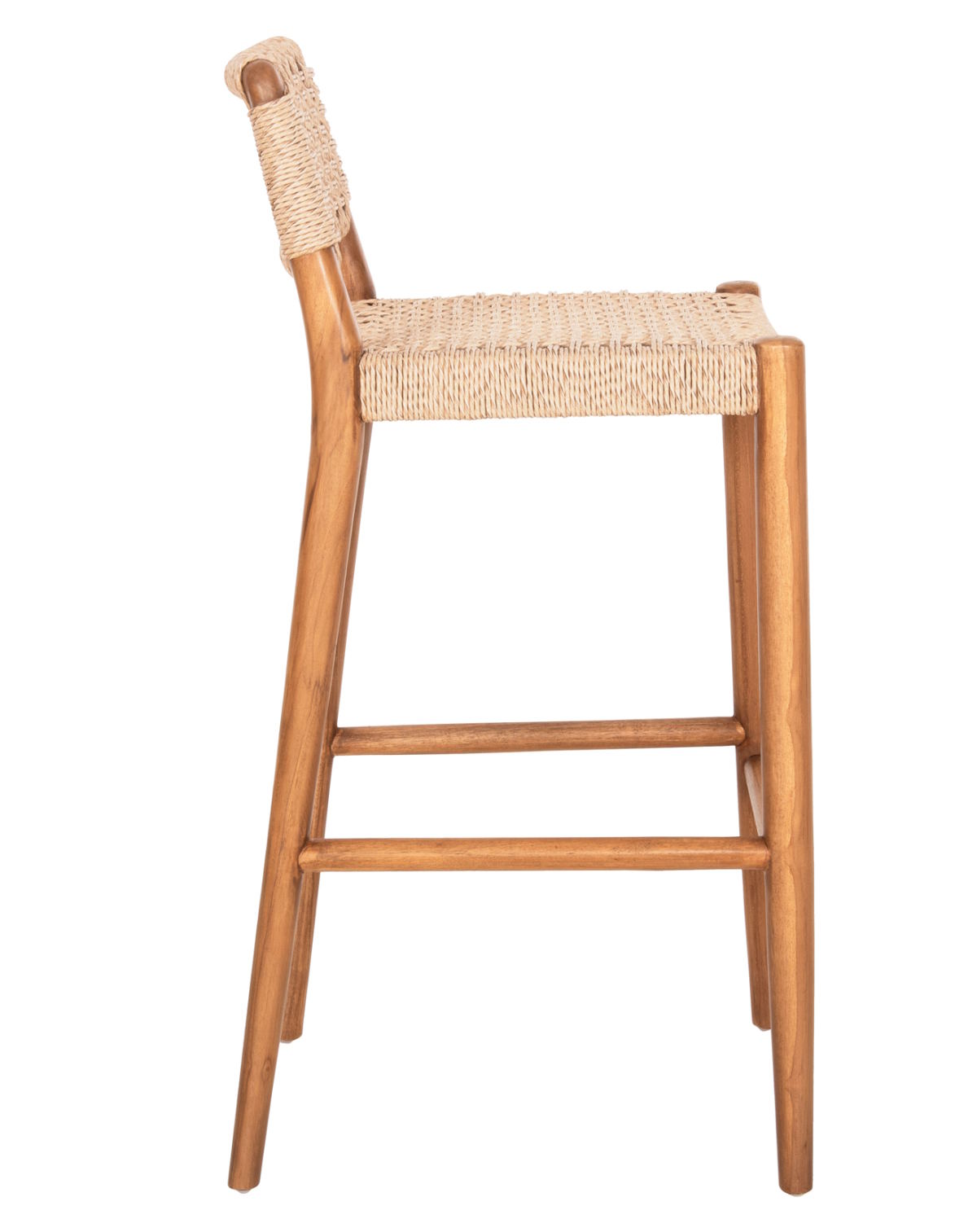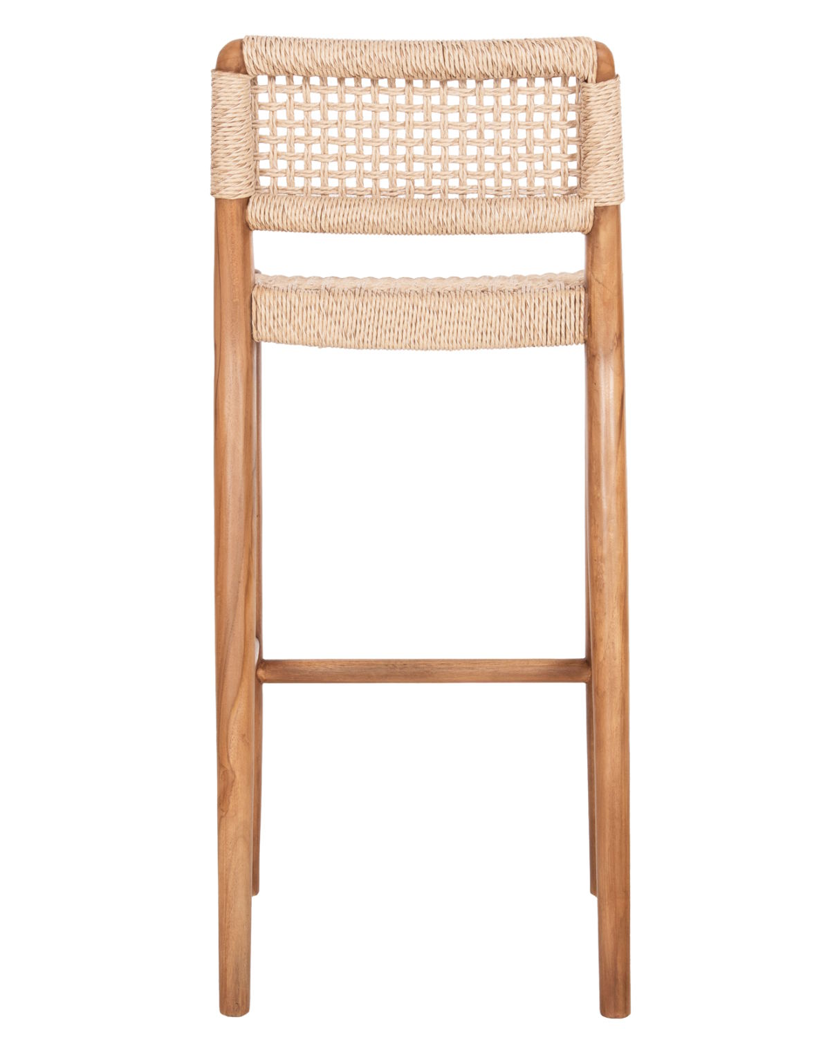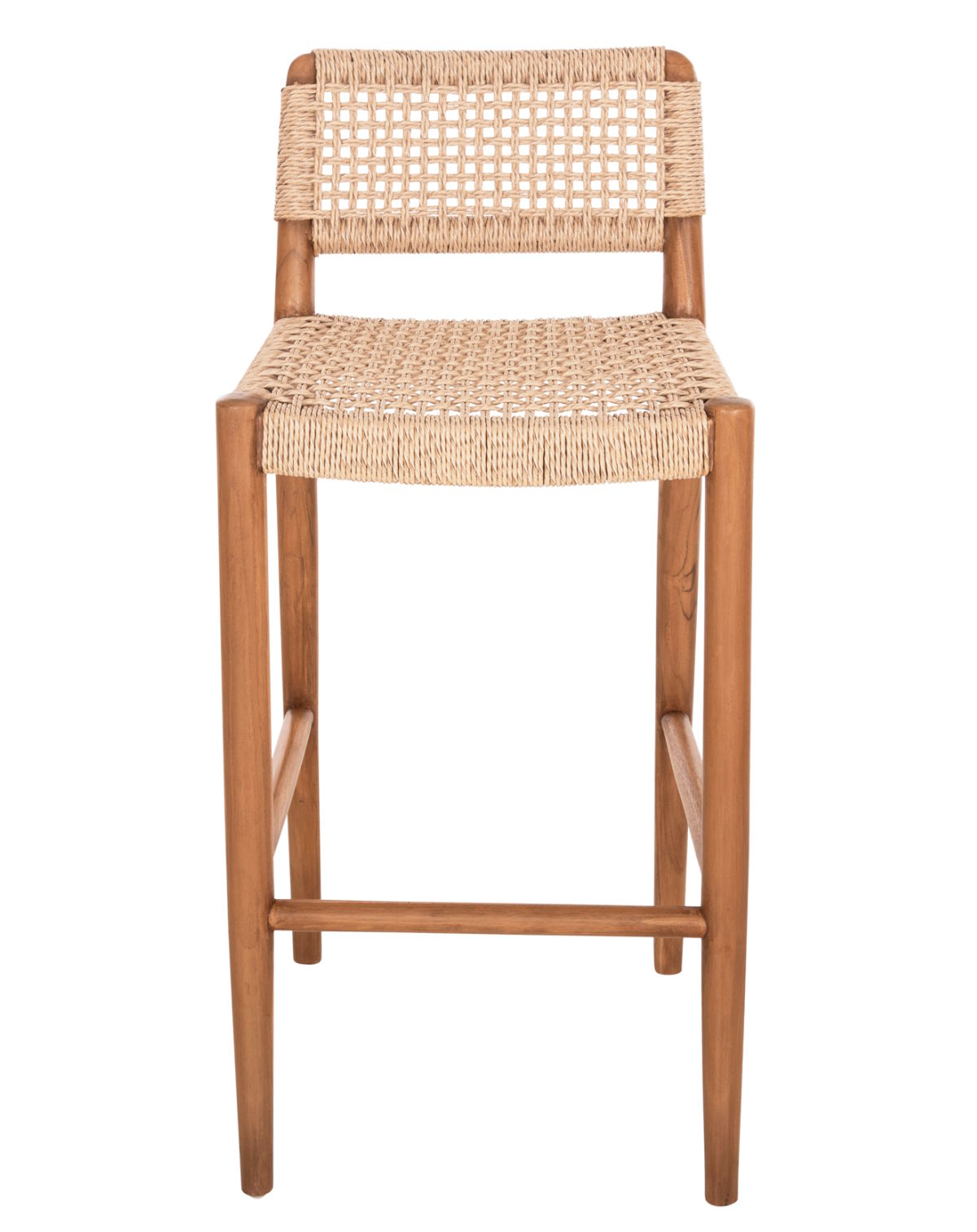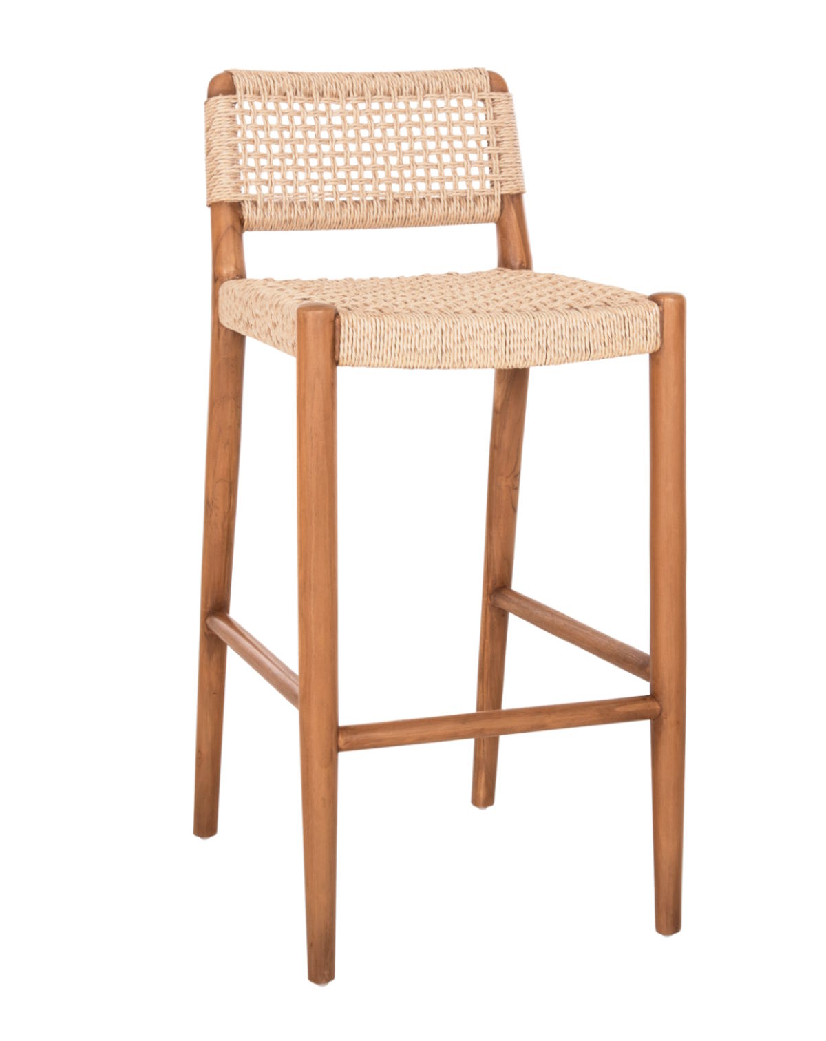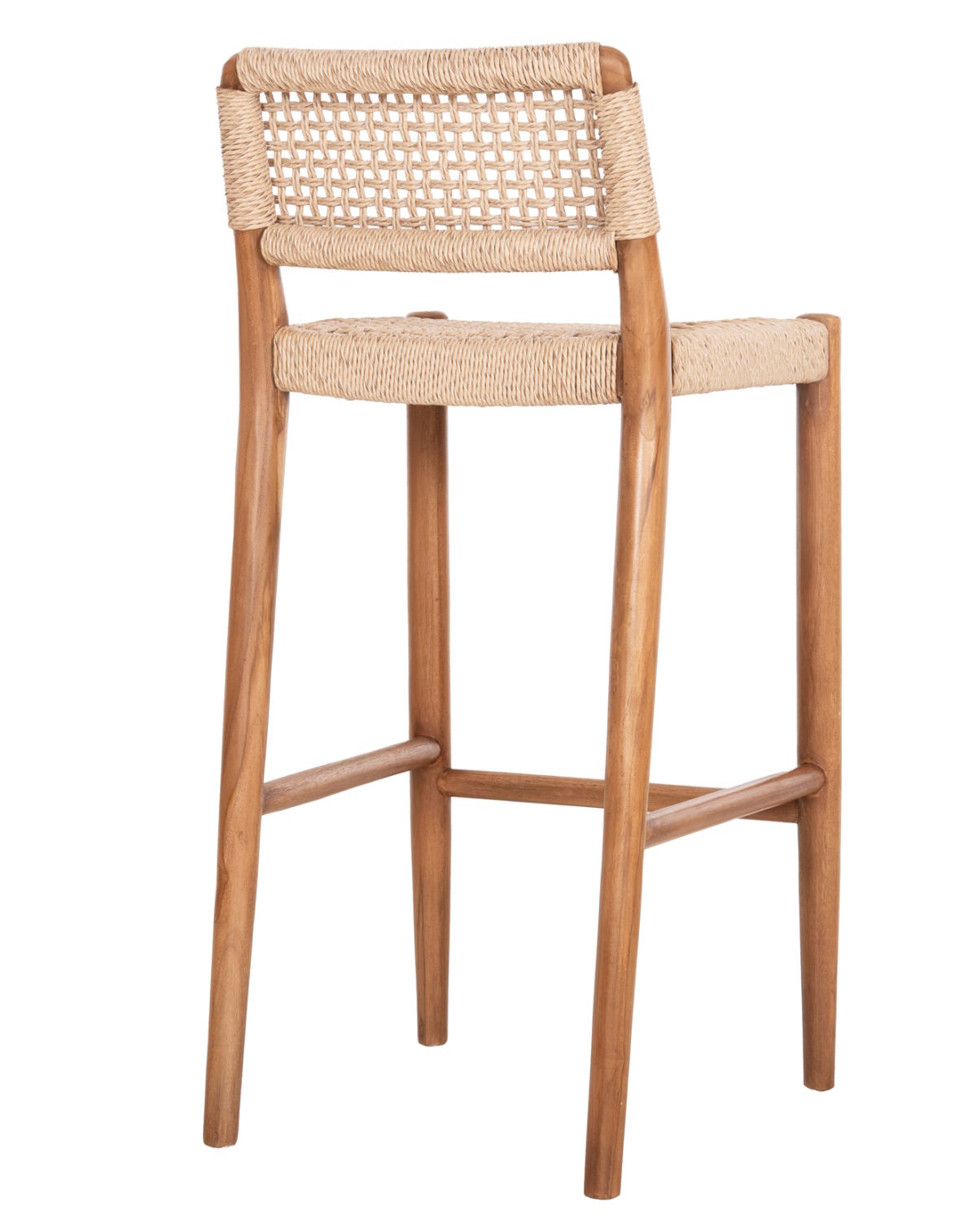Το σκαμπό μπαρ ROSCO αποτελεί επιλογή για επαγγελματικούς χώρους εστίασης και φιλοξενίας. Διαθέτει σκελετό από μασίφ ξύλο ΤΕΑΚ σε φυσική απόχρωση και κάθισμα με κοντή πλάτη από αριστοτεχνικά πλεγμένο σχοινί VIRO σε μπεζ χρώμα, προσφέροντας κομψότητα και αντοχή σε εξωτερικές συνθήκες.